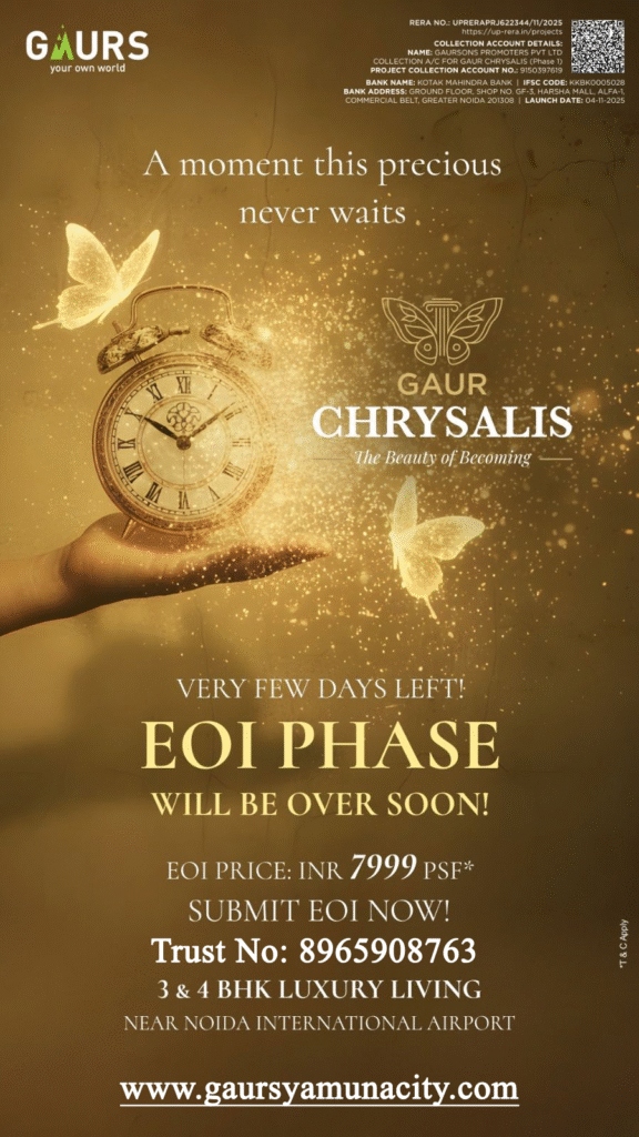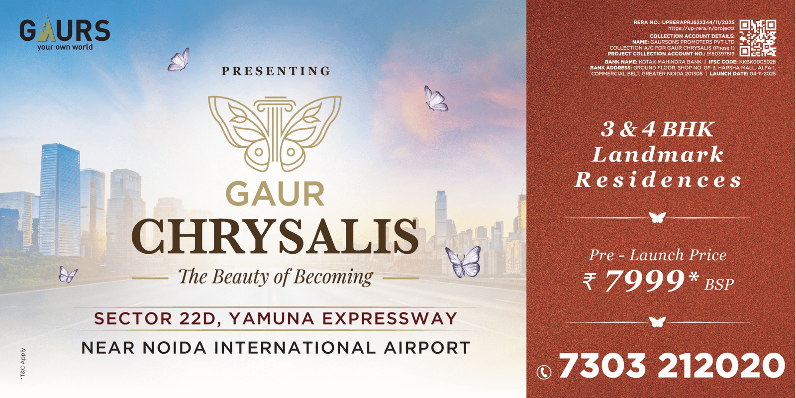 Gaur Chrysalis Yamuna Expressway Project is 15min From Upcoming Film City.